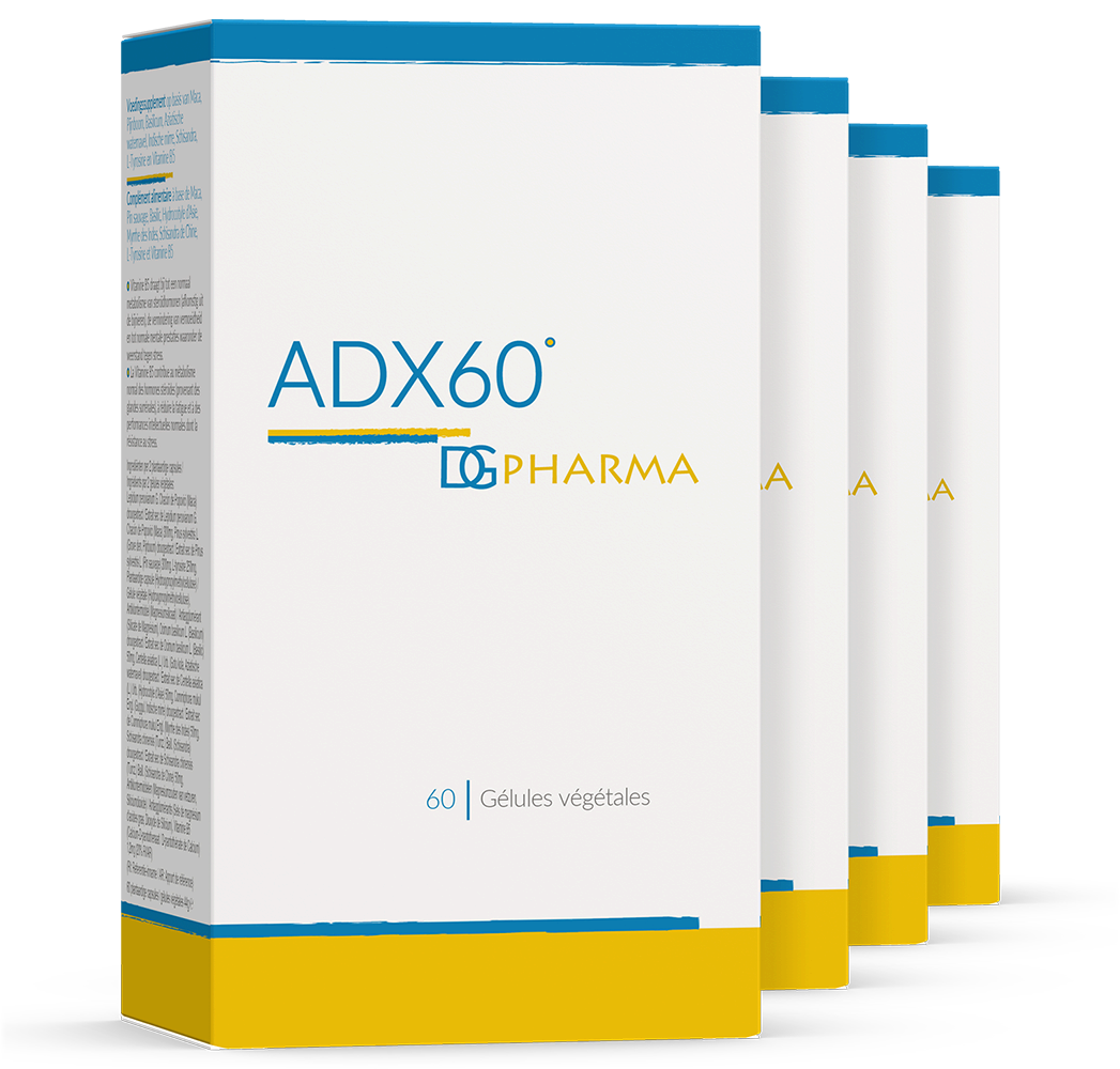 ADX60 est une composition unique de 6 plantes adaptogènes et de L-tyrosine. ADX60 soutient et restaure la fonction surrénalienne perturbée par un stress excessif. ADX60 régule l’équilibre entre la production des hormones du stress et des hormones anti-stress par les glandes surrénales. ADX60 restaure et prévient, naturellement, les causes et conséquences de l’épuisement par le stress et le burnout.